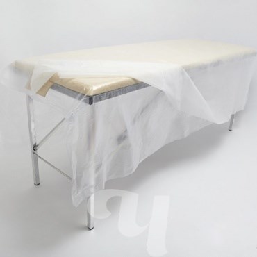 Простыни из полиэтилена, толщина 22-25 мкм, не пропускают влагу и усиливают тепловой эффект. Используются во время процедур обертывания тела, при проведении масляного массажа, скрабировании. Улучшают воздействие косметических средств, предотвращая высыхание препаратов. Подходят для косметологических и медицинских процедур.