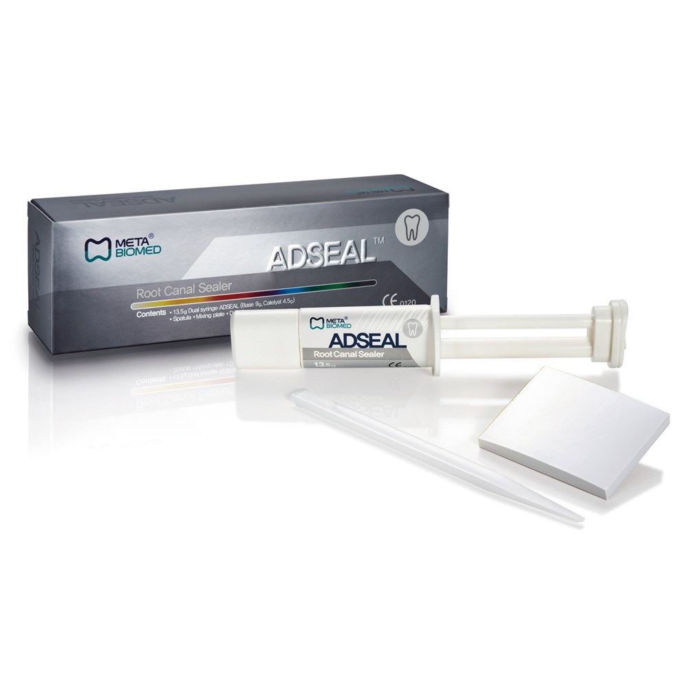 Adseal - двухкомпонентный пломбировочный эндодонтический материал на основе эпоксидной смолы, состоящий из паст основы и катализатора, для окончательного пломбирования корневых каналов постоянных зубов в комбинации с гуттаперчиевыми штифтами.