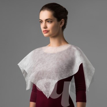 Пелерины из спанбонда на завязках. Защищают верхнюю часть тела и одежду. Используются при создании макияжа и прически, окрашивании бровей и ресниц, во время косметологических и других бьюти-процедур.