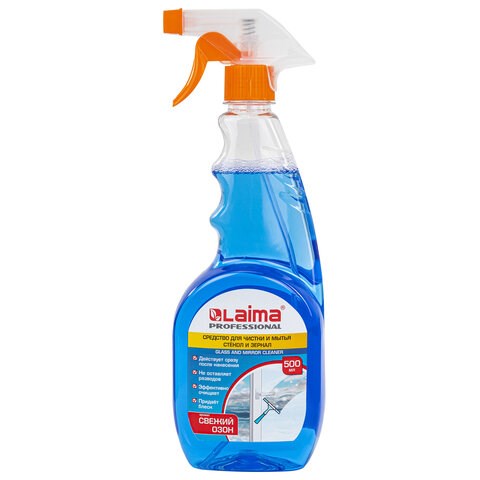 Средство для мытья стекол и зеркал LAIMA PROFESSIONAL эффективно для мытья оконных стекол, витрин, зеркал, автомобильных стекол, кафеля, хрусталя, фарфора, фаянса, экранов телевизоров и мониторов.Средство объемом 500 мл быстро высыхает, не оставляет разводов, обладает антистатическим действием. Удаляет даже застаревшую грязь, пыль и жир.