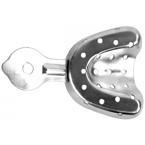 Ложка оттискная стоматологическая металлическая с перфорацией.